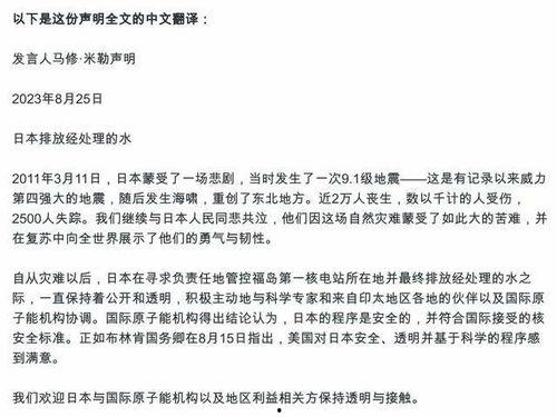 2. 外交交涉:我国政府已向日本政府提出严正交涉,要求其充分考虑周边国家的关切,确保核污水排放的安全性和透明度。